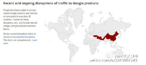 Gmail訪問(wèn)受限示意圖里(圖片來(lái)自新浪微博)