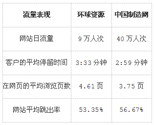 環(huán)球資源和中國制造網(wǎng)流量對比