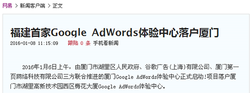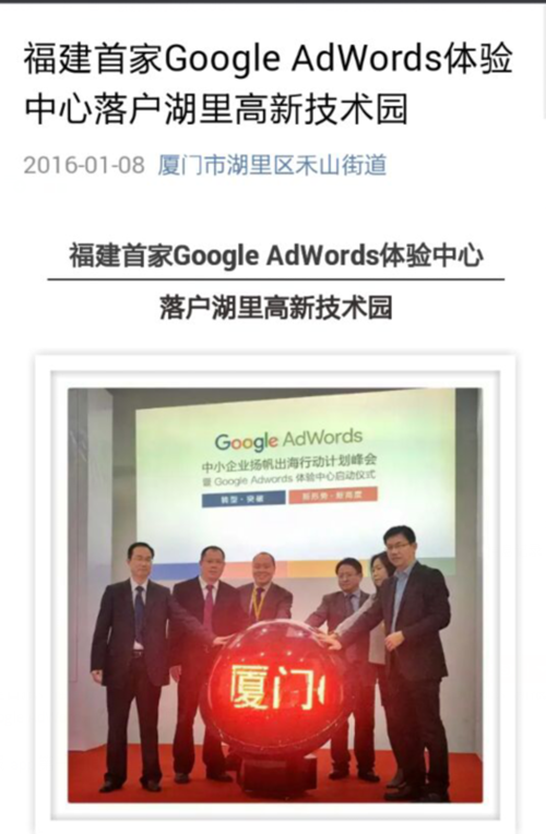 ? 湖里區(qū)禾山街道辦對廈門Google AdWords 體驗中心項目啟動事件的宣傳報道