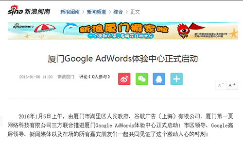 南方區(qū)最重要的Google AdWords 體驗中心落戶廈門啟動運營 感謝政府與媒體的支持與持續(xù)關(guān)注